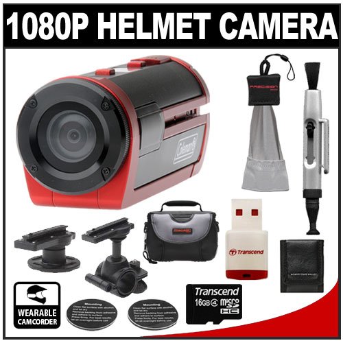 Here are some of the great features of Coleman Xtreme Sports Waterproof 1080p HD Helmet Wearable Camcorder Video Camera (Red) with 16GB Card + Adhesive Pads + Lenspen + Case + Accessory Kit